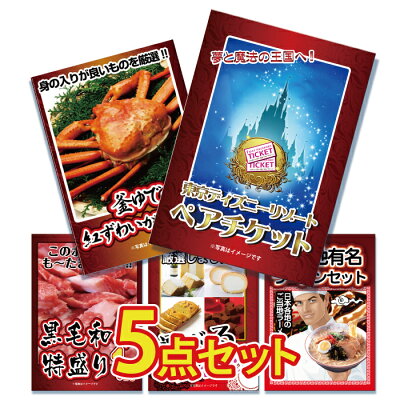 ビンゴ 景品 二次会 景品 ゴルフコンペ 景品 5点セット ディズニー チケット プレゼント カニ 肉 牛 選べる スイーツ ラーメン 目録 景品 ビンゴ 景品 結婚式 二次会景品 イベント景品 2次会景品 景品 セット 景品 パネル